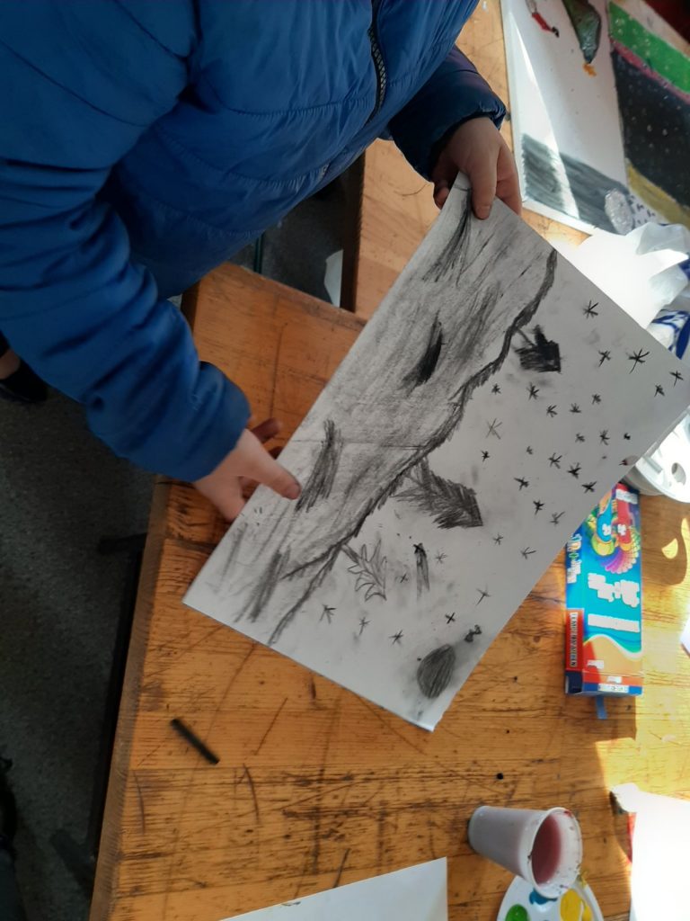 In December, four art workshops for children were held in the temporary reception centres Sedra and Borići. The first part of the workshops was held in the centres, while the second part was held with students of the Elementary School “Ostrožac”, where children from Sedra go to school. The workshops were held with numerous advices from an academic painter from Bihać. Teachers from the Elementary School “Ostrožac” and volunteers from the Lan Association also helped to create the works of art.
